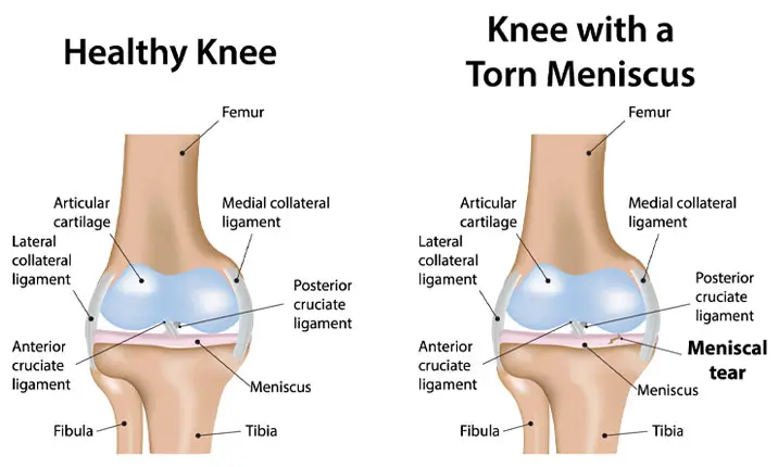 半月板是大腿骨(股骨)和胫骨(胫骨)之间的一块软骨。每个膝关节有两个半月板。在对膝关节施加压力或使其旋转的活动中,半月板可能会受损或撕裂。当半月板撕裂 发生时,你可能会听到膝关节周围发出 "啪啪" 的声音。您还可能会有滑动或弹出的感觉,这通常表明有一块软骨已经松动并阻塞了膝关节。撕裂的半月板不断摩擦关节软骨,可能会造成表面磨损,导致关节退化,最终会影响你的活动能力。