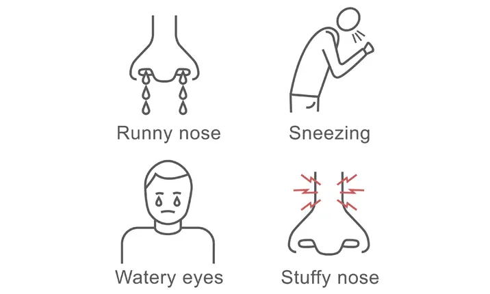 过敏性鼻炎的症状因接触过敏物质的时间长短而异。