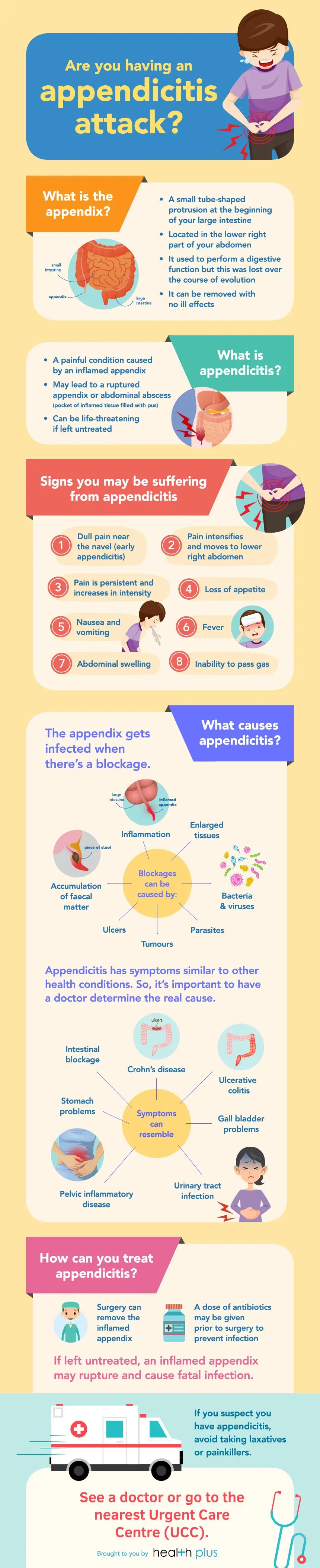 Emergency Signs and Symptoms of Appendicitis (2019, May 11) Retrieved October 26, 2020, from https://www.healthline.com/health/digestive-health/appendicitis-emergency-symptoms#1