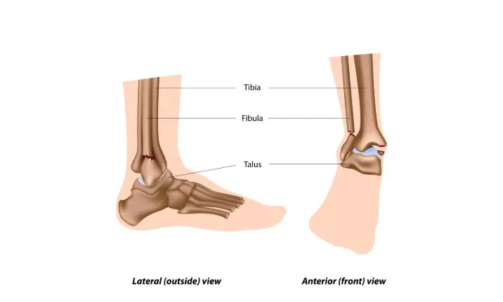 当脚踝周围的韧带松弛时就会发生扭伤。而踝关节骨折则是指踝关节内的骨断裂,这也可能与韧带撕裂同时发生。滚动、伸展或扭转关节,或施加极大的外力,都可能导致踝关节骨折。骨折严重时,踝关节可能会出现变形,或者骨突出皮肤。