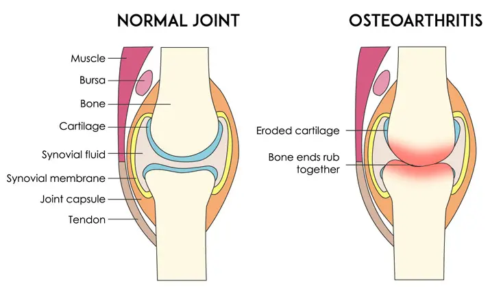 关节长期受压也会导致软骨损伤。超重或肥胖症患者的膝关节等承重关节尤其如此。这种长期的压力最终会导致关节软骨脱落,即骨关节炎。
